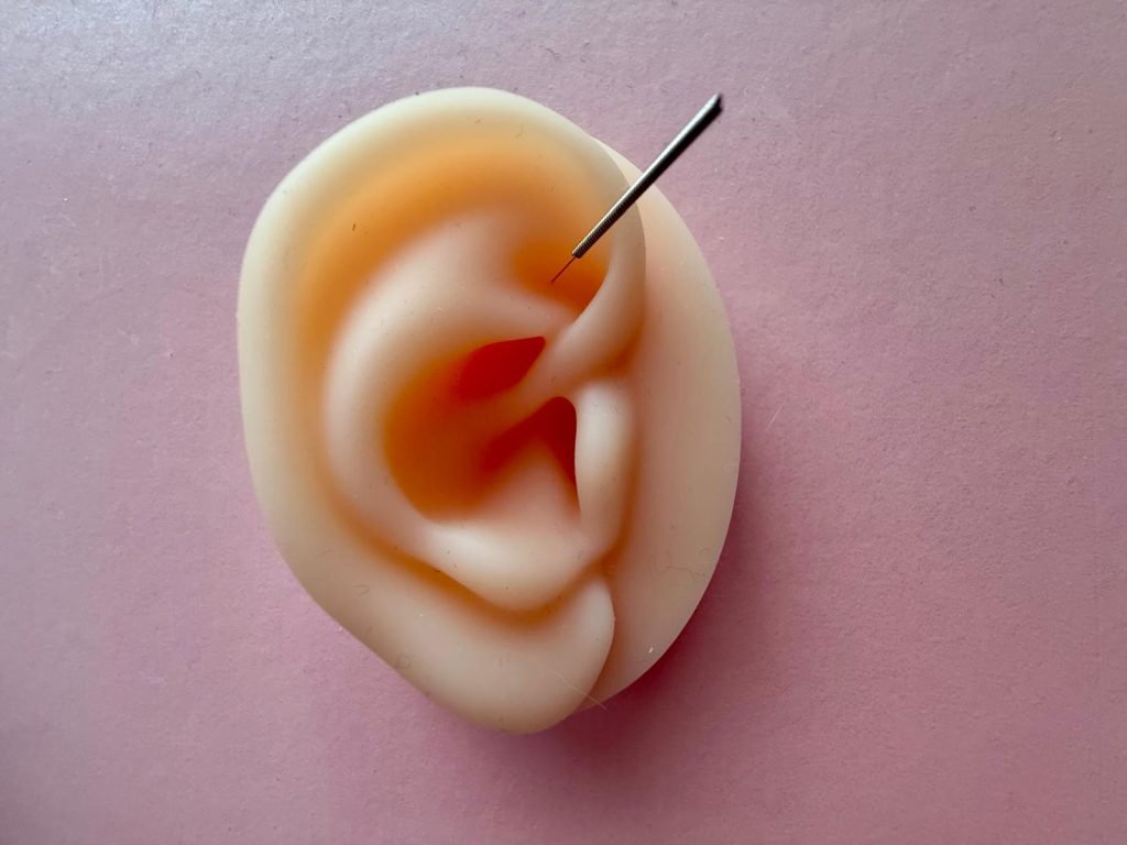 Naast een stukje theorie, waarbij we ook zeker even naar voeding gaan kijken, gaan we natuurlijk vooral oefenen. Daarvoor heb ik wat silicone oortjes in de praktijk. Uiteraard ga ik het juiste punt bij jou toepassen. Ik plak er daarna een zaadje op met een hypoallergeen pleistertje. Zo werkt het langer door én kun je goed voelen welk punt het precies is. Af en toe even met je vinger voelen en dan kun je het in de toekomst zelf.